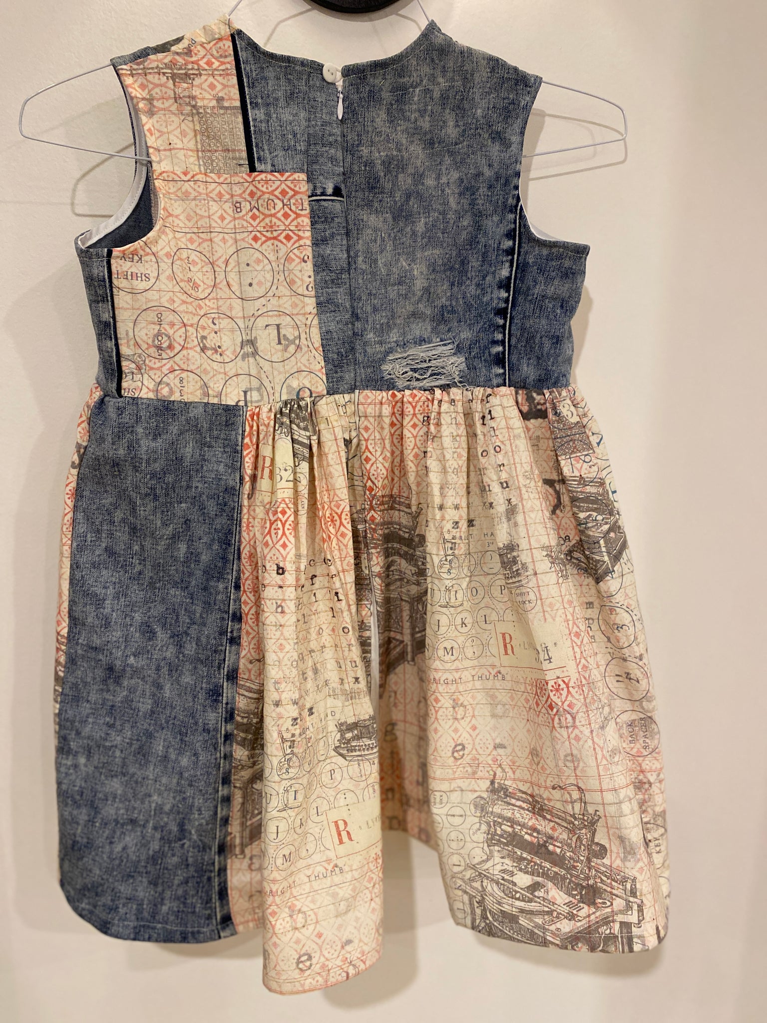 The juxtaposition of new cotton mixed with up cycled distressed denim, makes this one of a kind - edgy, whimsical, soft and rockstar - all in one!